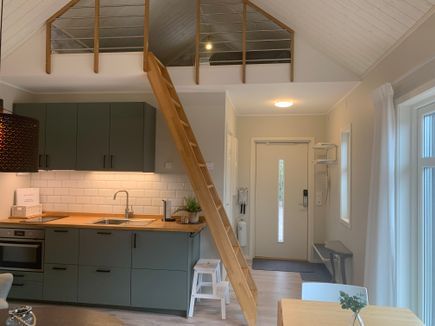 Newly built guesthouse in 2022, 2 bedrooms (one in the loft). Suitable for two adults and three children. Loft is more suitable for older children because of the ladder.