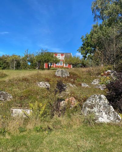 Here you live in a large garden with several apple trees. There are also raspberries on the plot and everything that is on the plot can be used/picked by the guests! Blueberries and mushrooms are found outside the plot. It's look like a painting when you look outside; fields with grazing cows and sheep, there are also great opportunities to see our wild animals like deers and mooses. A stone-paved terrace is available with outdoor furniture and a barbecue. The nearest fishing lake is 1 km away. You can rent a boat from the landlord. Nice swimming beach is 1.5 km away. The cabin has a high standard. Two bedrooms with a double bed 180 cm wide, a sleeping alcove with a bed that is 105 cm wide. There is also an extra bed that can be placed anywhere in the house. Travel cot for children is also available. Sheets and towels are included in the rent. Electricity and wifi are included in the rent. TV is available with the Swedish channels: 1, 2, 4, Kunskapskanalen and Barnkanalen. Cleaning can be purchased for SEK 1,500. Suitable excursion destinations from the cabin can be mentioned within 45 km High Chaparral, Isaberg Mountain Resort and Store Mosse. Within 90 km Ullared, Borås, Växjö, Jönköping and Halmstad. The nearest grocery store and gas station is 7 km.