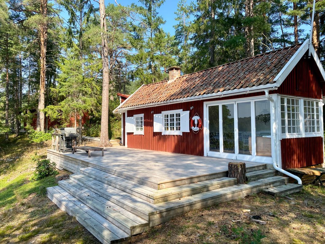 Kurön is located in Lake Valdemaren, between Stenhammar Castle and Harpsund, just 15 km east of Katrineholm. On the island, you will find a charming red cottage of 55 sqm, complemented by a separate sleeping suite of 30 sqm and an additional building with a modern composting toilet and an outdoor shower. In total, there are 6 standard beds – 4 in the sleeping suite and 2 in the red cottage – with the option to add 2 extra beds if needed.