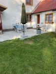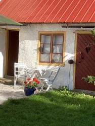 Stort 1800-tals hus med många bäddar (11) och gott om utrymme. På entréplan finns ett nytt badrum och kök med matplats samt ett vardagsrum med bäddsoffa, kamin och tv och ett matbord för ca 10 personer. Takhöjden på entréplan är 1.90 på charmigt 1800-talsvis. På övervåningen finns tre sovrum med totalt fem bäddar. I den stora trädgården står ett gästhus, ett s.k. gotländskt bulhus, med fyra bäddar och bekvämligheter såsom mikro, kylskåp, kaffebryggare m.m (inget rinnande vatten). I trädgården finns även möjligheten att bada i en enklare pool, gunga, grilla, etc. Man kan utforska det vackra närområdet med cykel och vi har fyra vuxencyklar att låna ut, varav en har barnstol. Det finns även ett utedass som går att bruka.