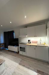 Are you looking for a peaceful and modern accommodation located in the beautiful residential area of Burlöv? Look no further! We currently have a newly renovated 27 sqm guest house available for rent. It features a bathroom with bathtub, washing machine, and dryer, while the kitchen was just completed on April 1st, 2023 and is brand new. The house is equipped with an efficient air heat pump that keeps the temperature comfortable all year round, whether you need to warm up or cool down.