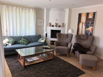 Huset har stora sociala ytor bla en veranda med vy över vatten med ett matbord (där över 20 personer får plats att sitta), ett stort välutrustat kök med öppen spis och ett separat matbord, 4 sovrum (varav ett med kakelugn), 2 badrum (varav ett med badkar) samt ett vardagsrum med öppen spis.