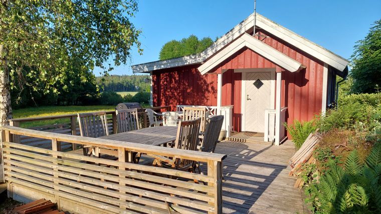 Stugan har ett fantastiskt lugnt läge som sista huset på vägen. Finns en lummig trädgård med fruktträd och stora gräsytor. Mycket barnvänligt då det inte är någon biltrafik förbi huset.