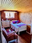 Upstairs there are two bedrooms, one with a double bed and one with a 120 bed. In addition, there is a smaller sofa bed in the hall. On the ground floor there is a well-equipped kitchen with an electric stove and a wood-burning stove, a bathroom, a double bedroom and a recently renovated living room. The covered porch is a great place to end the day.