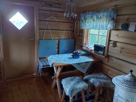 som min "storstuga" den har egen plats lite högre upp än huvudbyggnaden...egen ingång eget utedass och egen plats för bilen. Möjlighet att låna / hyra båt om man vill ut på sjön Tyren där det finns grillplats, stolar och bord och brygga ut till sjön, att nyttja den för hyresgäster ingår i hyran, även bastun ingår i priset...här kan man sola, koppla av i underbar fin och fridfull miljö, man kan cykla eller vandra på alla vandringsleder som finns alldeles i närheten...eller bara andas frisk luft och relax...man kan besöka och hämta källvatten från "min" trefaldighetskälla som ligger i närheten och finns delvis på mina ägor , inne i stugan finns diskbänk och porslin och diverse kökstillbehör, man kan använda gasolköket till att koka kaffe eller laga ett mål mat till sej... känns det svalt kan man göra en brasa i min fina kamin, där uppepå kamin finns även en kokplatta att värma nånting på om man skulle vilja det...Nere på byn finns mataffär, öppet alla dagar i veckan, äta på Fänforsen restaurang ef fullständiga rättigheter, besöka Dagnys dockmuseum, se konst i byn, bada i den tempererade bassängen ( populärt för hela familjen) eller besöka operafestival i Dala- Floda/ Björbo.
