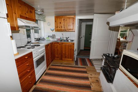 The cottage is an 18th century croft with an extension that has been renovated to full modernity and at the same time preserved genuine cottage character. The cottage has 3 rooms and kitchen + dining place, hall and washroom with shower and toilet. The kitchen is equipped with an electric stove, fridge/freezer, microwave and plenty of utensils. The living room has an old fireplace, sofa group and dining table. One of the bedrooms has a double bed and the other has a bunk bed. It is possible to temporarily arrange 2 extra beds in the living room. Mattresses, blankets and pillows are available for the beds including 2 extra beds.