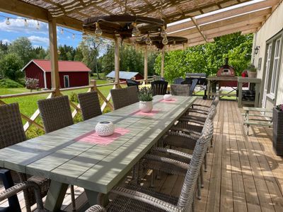 ☀️ The spacious terrace invites you to relax and enjoy time together from early morning until late evening. Outdoors, there is plenty of space for rest, play, and activities for all ages. In the barn, you’ll also find a ping-pong table and some workout equipment – perfect for a bit of fun or exercise, no matter the weather.