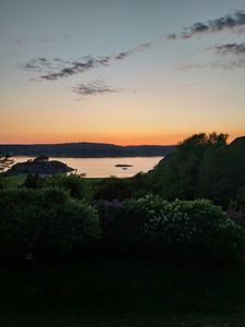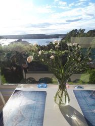 På framsidan finns en stor altan med bord och stolar och även där härlig utsikt över fjorden.