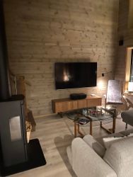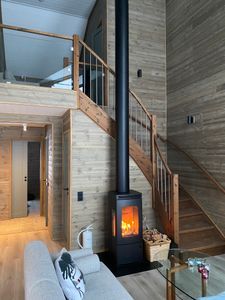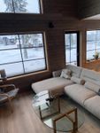 On the mountain, overlooking the mountain range, with a ski-in/ski-out location, the cabin features an open floor plan. The house was completed in 2023 and consists of a well-equipped kitchen, living room with a fireplace, 3 bedrooms spread across two floors with double beds in 2 rooms and one room with two single beds. Two bathrooms with one more spacious with shower, sauna, and washing machine, and the smaller bathroom upstairs with a shower. Upstairs also has a cozy TV corner with a sofa.