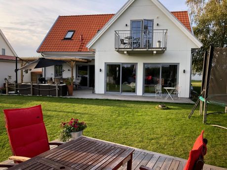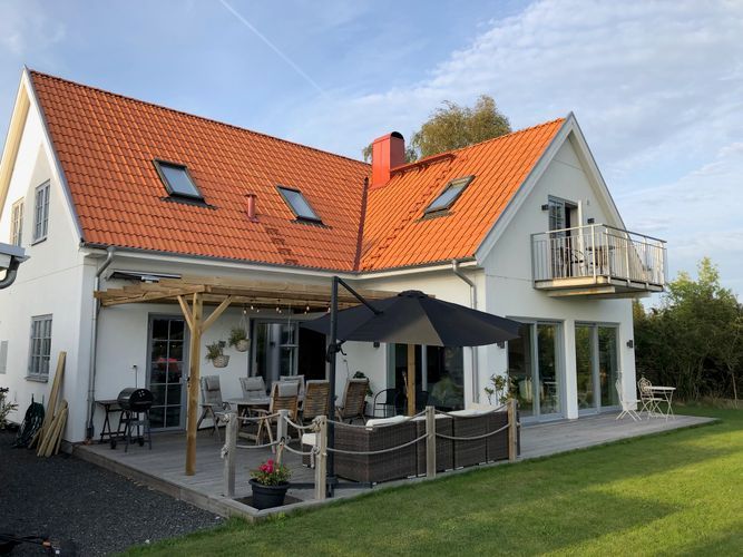 The house has a green garden with lawn, large wooden deck with barbecue and outdoor furniture and trampoline for the children. Currants, rhubarb and raspberries, depending on the season, just help yourself in the garden. The house is located in a fantastic location on the outskirts of a residential area with direct proximity to nature. Our own favourite is probably the summer bath in the limestone quarry, about 50 meters from the house, and preferably after a run on Klagshamn's cape!