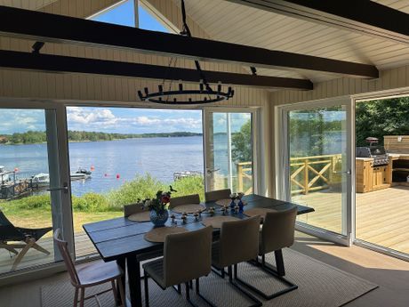 Invändigt finns plats för 8 personer i matsalen med en magisk utsikt över vattnet.