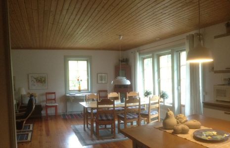 Lovely big house in the Misterhult archipelago, situated in Adriansnäs rekreation and holiday home area just 150 m from the sea. 100m2 + 16m2 veranda/ porsh. Fully equipped kitchen with dishwasher. Washing machine and dryer. 2 WC, one incl. shower. Access to sauna and playground in area. Beds: 1 db/1 bb/1 bb. Access from 15.00 hours on saturdays until 12.00 noons on saturdays of departure. Final cleaning as option 700 sek.