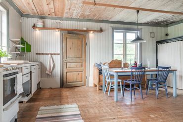 The house is a timber house with 9 rooms, of which 5 are bedrooms, 2 are living rooms, 1 is a toilet, and there is a large country kitchen. With 7 fireplaces, two of which are usable, the rustic and charming feel is very present, and the great advantage is the proximity to the unique nature and culture of the High Coast.