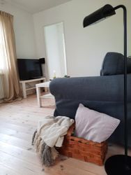 Här hittar ni vår 3:de lägenhet, med rum för 4 personer. Det finns 1 dubbelsäng samt 2 stycken 90 cm sängar uppdelat i 2 rum. Tillsammans med hall, vardagsrum, kök och badrum. Ni har även tillgång till en egen trädgård och uteplats med grill (om det är tillåtet).
