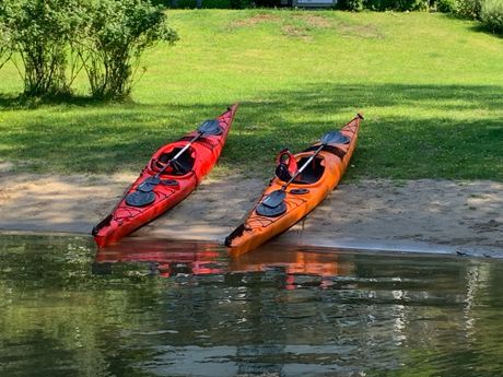 Det finns två havskajaker att låna.