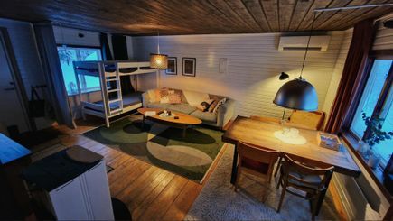 Welcome to a peaceful cabin featuring a wonderful sauna in the yard and a perfect location between Kiruna (7 km) and Jukkasjärvi (6 km). Close to the Icehotel, nature, hiking, and skiing. An ideal spot to experience the Northern Lights thanks to the dark, clear skies. Perfect for couples, friends, or solo travelers looking to experience the magic of Lapland. ❄️
