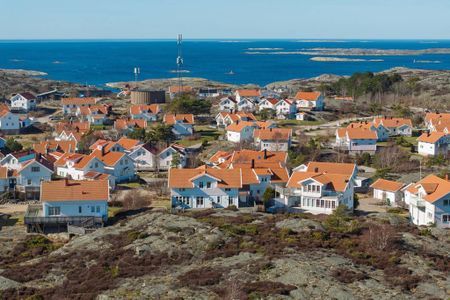 The house is situated in an elevated and sunny position on Tången, a small white-painted West Coast village approximately 500 meters northeast of Mollösund. You are within bathrobe distance (200 m) of the homeowners’ association’s private jetty, sauna, and sandy beach.