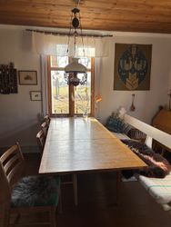 - Mysigt allrum med stort matbord (plats för 8-10), liten soffgrupp och täljstenskamin.