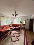The house is a classic two-story 1950s home, decorated in traditional Swedish style. On the ground floor you’ll find a kitchen, living room, and a lovely terrace ideal for long breakfasts or evening barbecues. Upstairs there are two bedrooms and a balcony overlooking the large garden. The property also features a pergola, a barbecue area, and a cozy park right next to the garden – perfect for both relaxation and play.