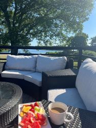 The house is set in a quiet, natural environment on its own island, yet remains easily accessible. Regular boat connections to the mainland operate three times daily, making commuting and excursions simple and convenient.