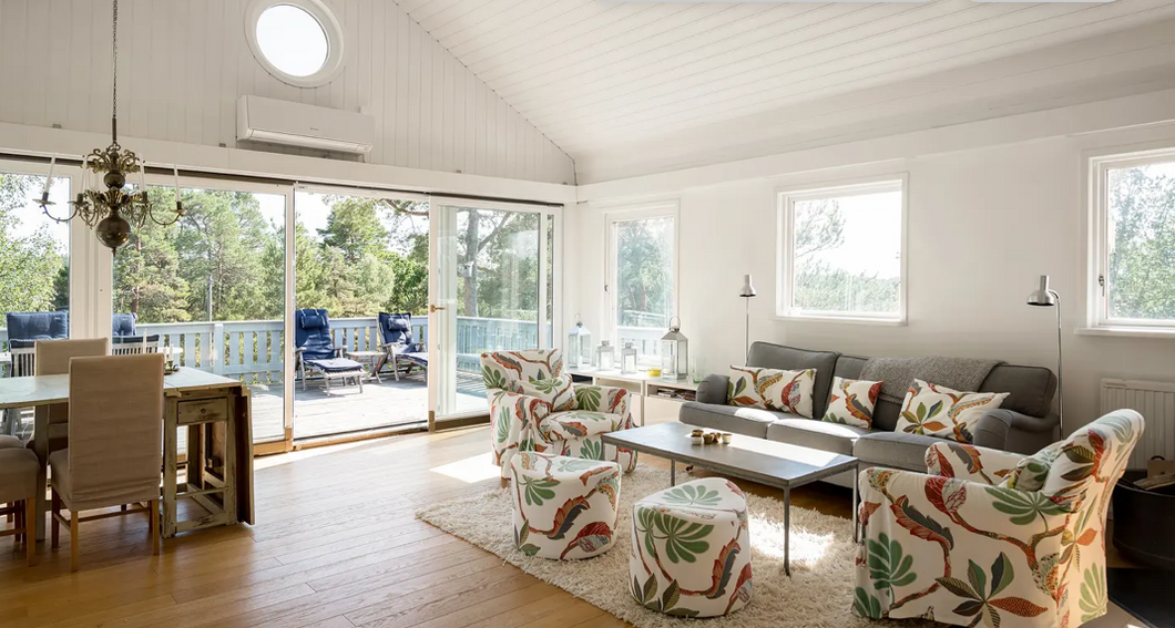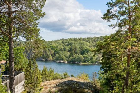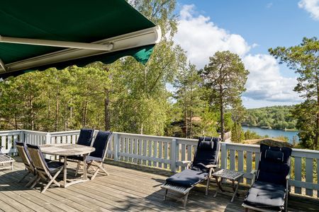 Large, beautiful house fully equipped with fresh and stylish interior, located at the top of the island with a private location and wonderful views. A perfect place to enjoy beautiful sunsets and watch boats pass in the fairway at Lindalssundet (limited sea view).