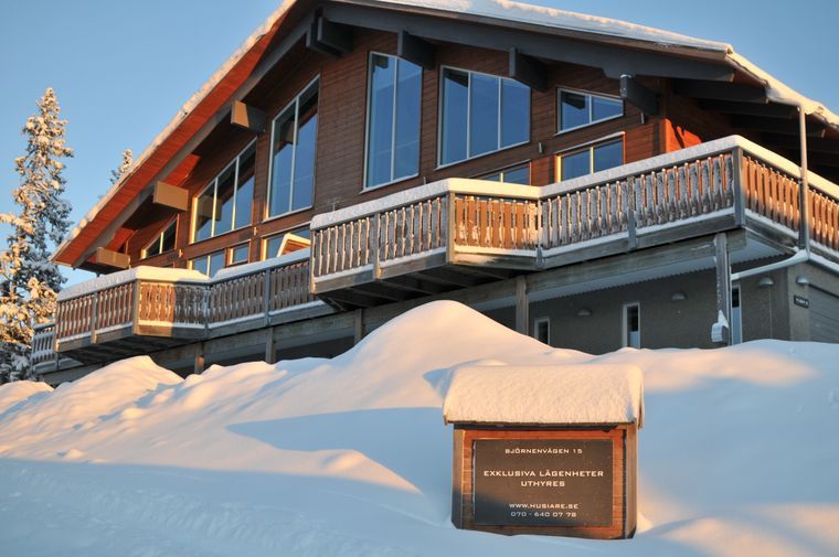 Exklusivt fritidshus i Åre Björnen. Utöver 2 10-bäddslgh finns denna lgh på 90 kvm och 8 bäddar. Lägenheten har 4 sovrum (2 med dubbelsäng, 2 med våningssäng), 2 duschrum, i det större finns bastu, tvättmaskin och torkskåp. Stort allrum ca 40 kvm med braskamin och soffgrupp. 50 tums smart TV, stereo, DVD, Playstation. Kök i ek och granit med all utrustning. Fast bredband med internt nätverk för internetuppkoppling. 2.7 m takhöjd ger bra rymd. Golvvärme i hela huset. Separat rum i huset för ombyte där pjäxor och hjälmar kan lämnas. Suverän, fri utsikt över Skutan, Åredalen och Renfjället. Skidnedfarten går vid husknuten till hela Åre liftsystem, ett RIKTIGT Ski-in Ski-out läge. Mycket bra längdåkning med belysning upp till 5 km.