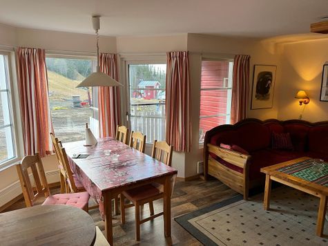 The apartment is situated approx. 40 metres from lift and the new express cablecar and 250 metres from the Hotell Vemdalsskalet with sportshops, outlet for hiring och buying skiing equipment, restaurants and a well-equipped supermarket.