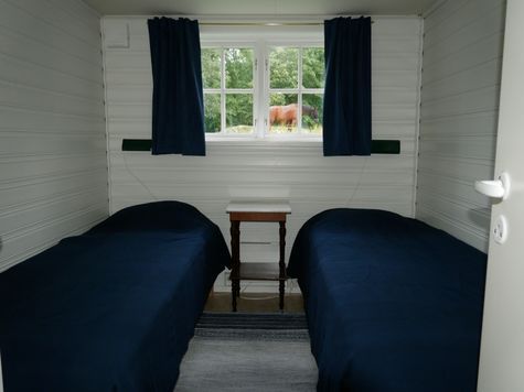 The cabin is very fresh with 2 rooms and a kitchen and a sleeping loft. WC/Bathroom with shower, toilet and washing machine. Private garden area with garden furniture and barbecue.