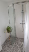 Stuga med stort allrum och mycket fönster. Stor altan i söderläge under tak med fri sikt mot skogen. Tre sovrum, varav ett med dubbelsäng och ett ...