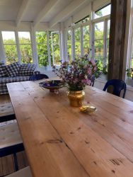 90 m² + 40 m² glasveranda, källare med tvättmaskin.
