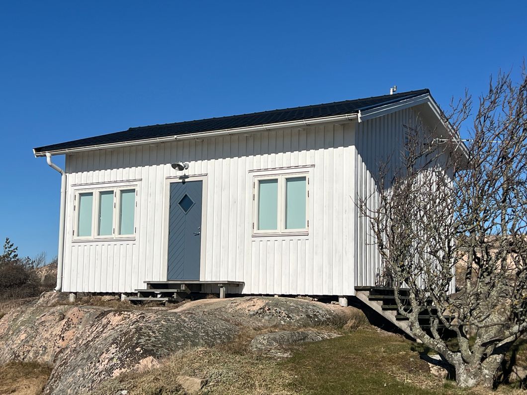 Välutrustad stuga med underbar havsutsikt. I väst blinkar Hållö fyr.