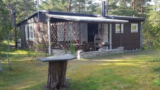 Stugan ligger nära till härlig sandstrand med tennisbana och natursköna strövområden.
