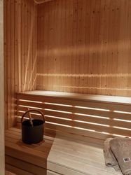 Här bor man 6-8 personer. Optimalt planerad med stor hall med goda avhängningsmöjligheter och torkskåp. Öppen planlösning med vardagsrum och kök, tre sovrum (160cm säng, 2 våningssängar med 140cm + 90cm), 2 badrum och bastu.