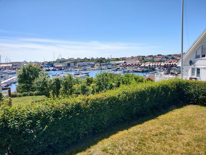 En rymlig och trevlig lägenhet i bottenvåningen i en villa lugnt belägen med fantastisk utsikt över springets båthamn . Sovrum med dubbelsäng, TV-rum med bäddsoffa för två, fyllt utrustat kök med köksmöbler, badrum med dusch, Härlig uteplats i söderläge mot båthamnen. Barnvänligt och nära Tångens barnvänliga badplats, 15 minuters promenad till fina klippbad. C:a 700 meter till Kungshams centrum med affärer, resturanger och båten till Smögen. Eventuellt. 1 extra bädd mot tillägg. Katt finns i huset.