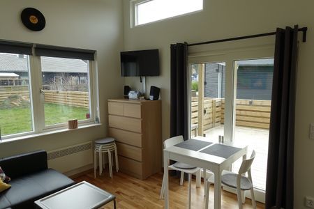 Welcome to the cottage Lilla Vik in Vik - Österlen's pearl. The cottage was built in 2020 and has a floor area of approx. 32 square meters divided into a living room, kitchenette, toilet with shower and sleeping loft (low second floor with double bed). The cottage is located above the beach slopes, about 200 meters from Vik's fishing village, swimming beach and orchards. In the south/west position at the entrance to the cottage, there is a wooden deck with outdoor furniture (dining table, sofa group and sun beds) and 4 bicycles that can be borrowed for excursions.