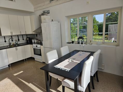Fullutrustat kök med mikro, kyl o frys, spis med varmluftsugn, spisfläkt, diskmaskin, diverse köksmaskiner som matberedare, stavmixer, brödrost, våffeljärn, vattenkokare, kaffebryggare. Det finns även strykjärn o strykbräda samt hårfön.