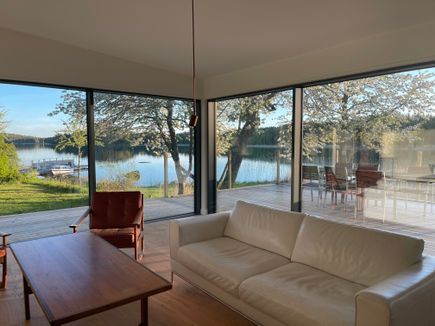 The large living room has an exceptional panoramic view over the lake, and the modern kitchen invites you to sophisticated cooking with a view. The large terrace overlooking the lake is a perfect location for dinners in the evening sun. Make yourself comfortable in the evenings in front of the heating stove or in any of the bedrooms located in the part of the building inspired by the late 1800s.
