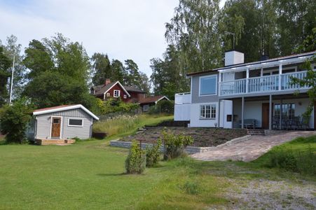 Large rurally located house and spacious guest cottage on a lakeside plot with panoramic views of Myttingeviken. Fenced plot with large lawn, cherry trees and private jetty.