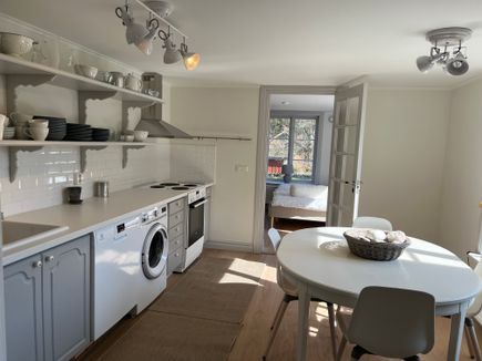 Elegant and newly renovated old country store located in a small castle village with a historic church. It has a modern kitchen, fully equipped with dishwasher and washing machine, with a garden terrace where deers passes through in the night.