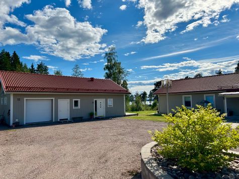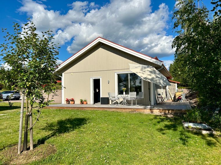 Gäststugan, byggd 2023, ligger i anslutning till vårt garage och är fristående från huvudbyggnaden på tomten. Den ligger längst ner på en liten väg ca 100 meter från Orsasjön med utsikt över sjön och den vackra omgivningen och har en altan i väst- och söderläge med sol från morgon till sen eftermiddag.
