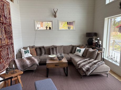 Modernt fjällhus om 135 kvadratmeter i direkt anslutning till skidbacke, endast ett par stavtag från Hovdeliften. Fullutrustat kök, matplats samt sällskapsyta med kamin och en underbar utsikt mot Dromskåran och den kvällsupplysta Drombacken. Tre sovrum på nedre plan, ett med dubbelsäng och två med familjesängar 120/80 och 120/80 cm. Rymligt badrum med dusch och bastu i anslutning till hall. På övervåningen finns ytterligare ett sällskapsrum med Google TV samt läshörna med fåtölj, ytterligare ett sovrum med dubbelsäng samt toalett.