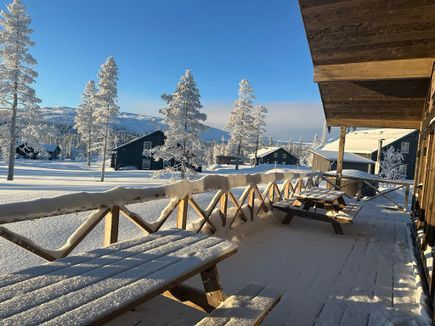 Direkt utanför stugan finns möjlighet att ta längdskidor upp på fjället eller till fina motionsspår. Via samma led vid stugan går det även att ta sig upp på fjället med skoter