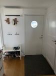 Badrum med wc, dusch och tvättmaskin. Garderob finns i ett av sovrummen. Planlösningen mellan allrum och kök/matplats är öppen. Från allrummet når man den inglasade altanen och trädäcket.