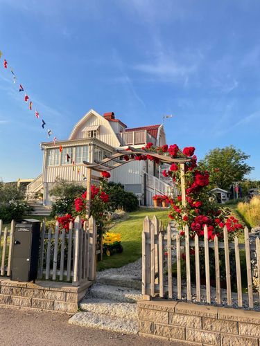 Welcome to a well-kept villa with a large plot about 70 metres from the sea. Here you can swim directly from the pier or walk/drive to child-friendly Kårevik. Sun-drenched garden and patios in all directions. The largest patio has room for about 12 persons and the smaller 8 persons. The balcony on the upper floor offers a fantastic view of Klädesholmen, especially at sunset. The plot also has a spa bath and playhouse. Small trampoline can be borrowed and 2 kayaks. Fence around the entire yard if you have a dog.