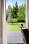 You also have access to a large terrace that is well suited for dinners on warm summer evenings. From the terrace you also have a partial view between the trees over Lake Fyllesjön. The lake offers both fine fishing and a swimming area with seating. A canoe is included when you book this accommodation and you can also choose to rent a boat and boat motor for 100 SEK per day. You also have the option to add final cleaning as an optional service supplement for a cost of 1500 SEK per stay. During 00:00-06:30 on weekdays, a robotic lawnmower is set to mow the plot and it is therefore a good idea to store your belongings on the terrace.
