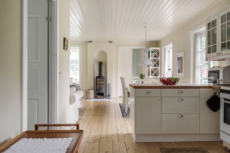 The holiday home was once an old mission house that was completed in the latter half of the 19th century. After a complete renovation, the house has now been converted into a residence. With cozy furnishings and amenities such as a dishwasher and washing machine, Chromecast, Apple TV and a wood-burning stove in the living room, you have good conditions for a wonderful stay. The owner lives on the plot next door and is available for questions during your stay. The plots are separated by privacy screens.