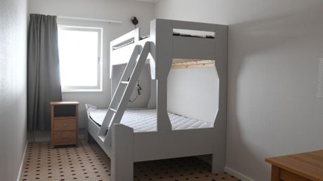 Entrance and upper floor: Nice hall with tiles and underfloor heating with drying cabinet and hooks for helmets, etc. Bedroom with bunk bed and wardrobe, toilet with shower, well-equipped kitchen with fridge and small freezer, electric stove with oven and 4 hotplates, microwave, toaster, coffee maker, kettle, etc.