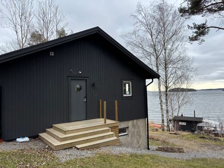 There is also a small waterfront cottage with a wood-fired sauna and a private jetty. Outdoor seating areas with a grill is available both by the main house and the waterfront cabin.