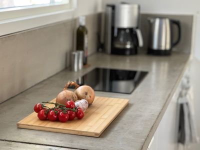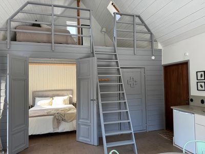 The house features one bedroom with a 160 cm double bed, a sleeping loft with a 140 cm bed, a bathroom, and a fully equipped kitchen. You’ll also have access to a TV with Chromecast and Wi-Fi.