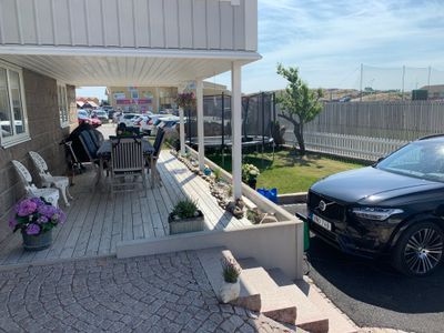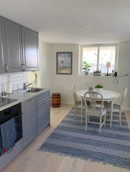 Ni kommer att ha nära till allt när ni bor i denna centralt belägna lägenhet. Plan 1 i villa på ca: 60 kvm med hall, kök, badrum, v-rum samt sovrum. Gratis wi-fi finns. Utomhusgrupp under tak samt tillgång till grill. Gratis parkering för 1 bil vid huset. Möjlighet att ladda sin elbil mot tillägg. Badrum med wc, tvättställ samt dusch. I köket finns köksbord med stolar, kyl/frys, ugn, spishäll, diskmaskin, vattenkokare samt kaffebryggare. Fullt utrustat med köksredskap. Vardagsrummet har en soffa med soffbord samt två fåtöljer. Apple TV finns med olika appar så ni kan logga in på era egna konton. I sovrummet finns 2 st enkelsängar samt en våningssäng med underslaf på 120cm samt en överslaf på 90cm. Från tomten ser man vattnet, sjöbodar & båtar och bara några hundra meter bort ligger en av alla härliga badplatserna på Smögen. Där badar man från en mindre sandstrand, klippor, badstegar eller går i från handikapsrampen. Större badplats med stegar & hopptorn finns också i närheten. Smögenbryggan med härlig mat, dryck & shopping ligger med några minuters promenadavstånd. I närheten av huset finns även butiker, bageri, outlets etc. Även gångavstånd till minigolfen samt Ica butik. För den golfintresserade ligger Sotenäs golfklubb ca 15 minuter med bil från Smögen. Padelhall finns också på behörigt bilavstånd. Lägenheten är djur & rökfri. Incheckning kl: 15.00. Utcheckning kl: 11.00. Städ kan bokas för 1200kr. Städar man själv kommer vi att kolla av städet innan utcheckning. Hyra av sänglinnen kan bokas för 150kr/säng.